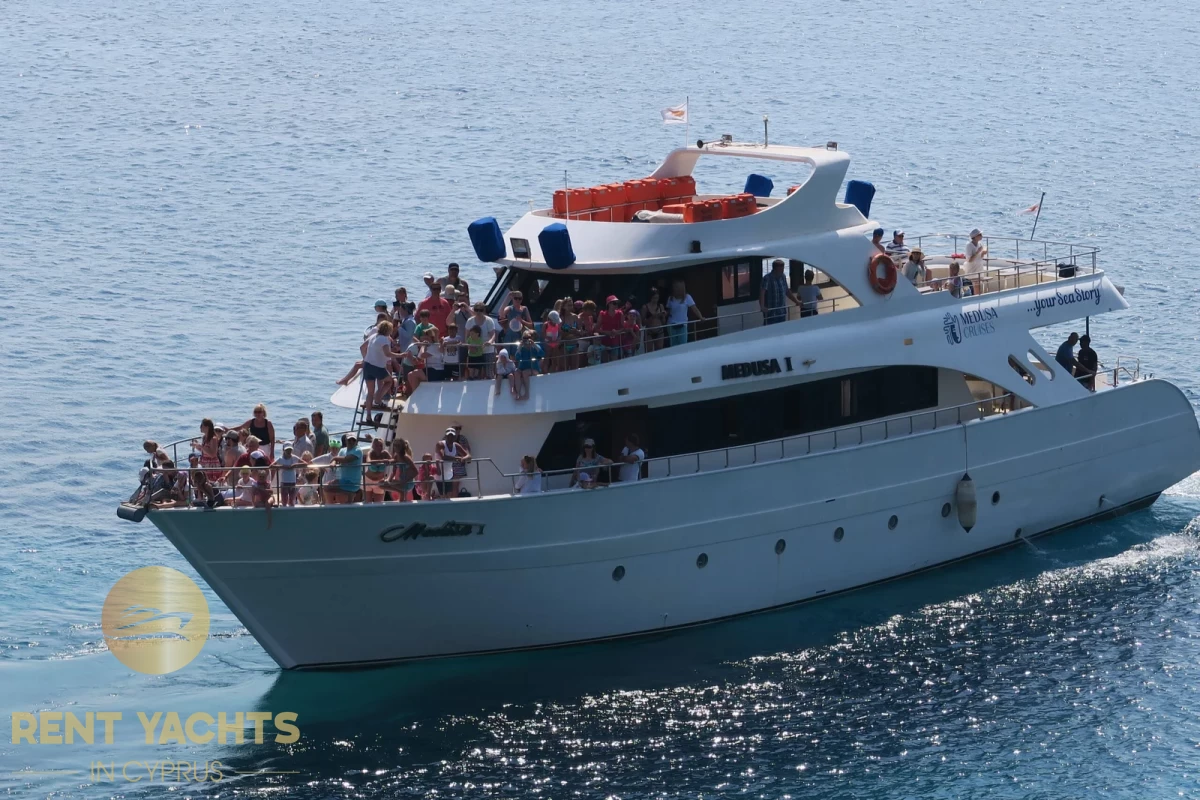 The Medusa Yacht is one of the best choices in Cyprus for weddings, large group events, and unforgettable celebrations at sea. Based in Protaras, this spacious event yacht is fully licensed to host up to 150 guests, making it perfect for big occasions where you want to celebrate together in a unique and breathtaking setting.