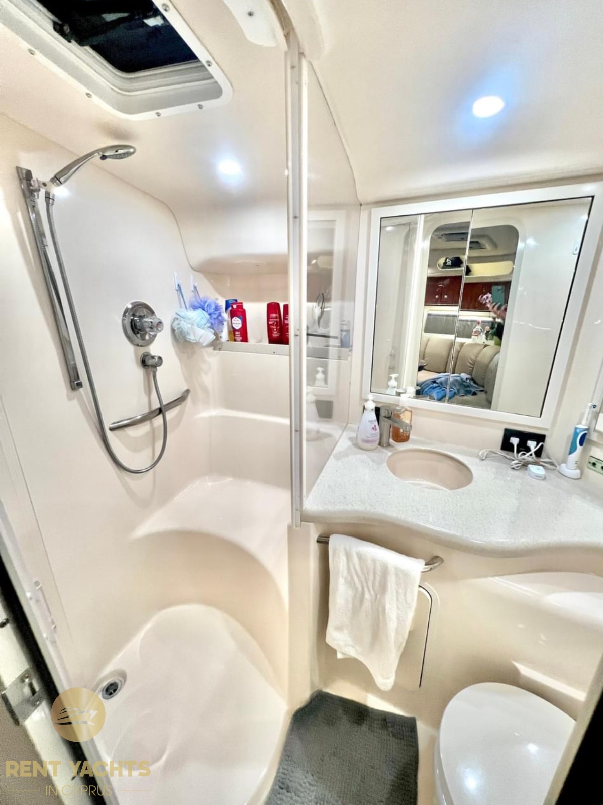The spacious area of the yacht can accommodate a maximum of 16 passengers. The yacht has one cabin with two berths. The comfort of the deck and cabins will create ideal conditions for a luxurious holiday with family or friends, in the crystal clear waters of Cyprus.