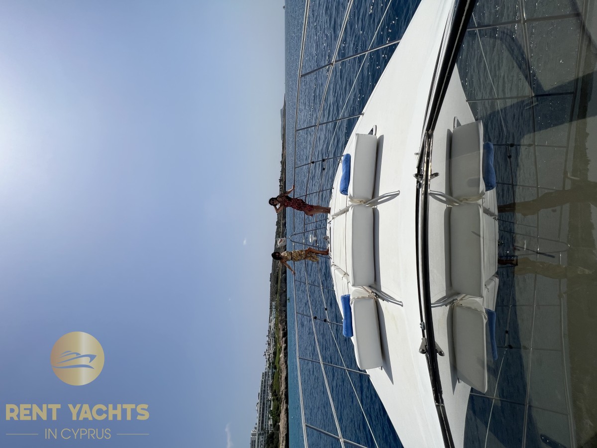The spacious area of the yacht can accommodate a maximum of 16 passengers. The yacht has one cabin with two berths. The comfort of the deck and cabins will create ideal conditions for a luxurious holiday with family or friends, in the crystal clear waters of Cyprus.